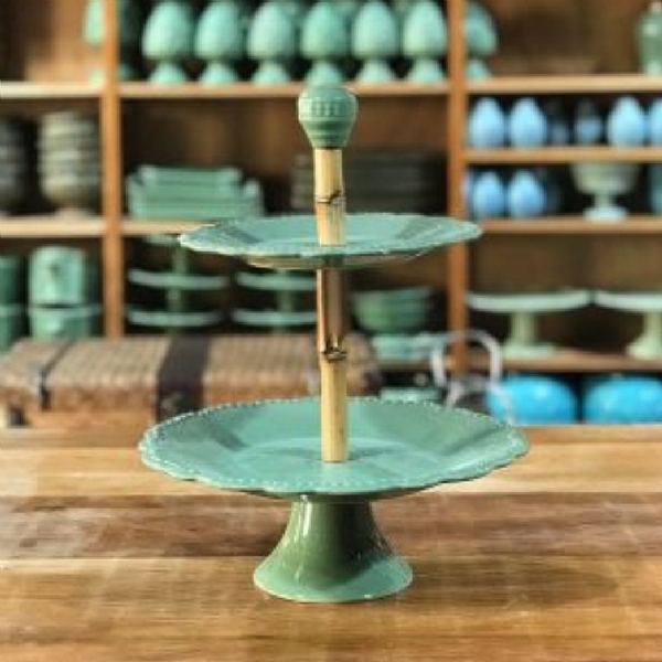 Porta Doce 2 Andares Bambu E Ceramica 31cm X 40cm Pd008v |