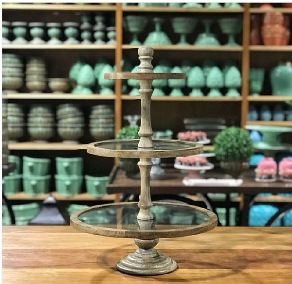 Porta-doces 03 Andares Madeira E Vidro Pd018u |
